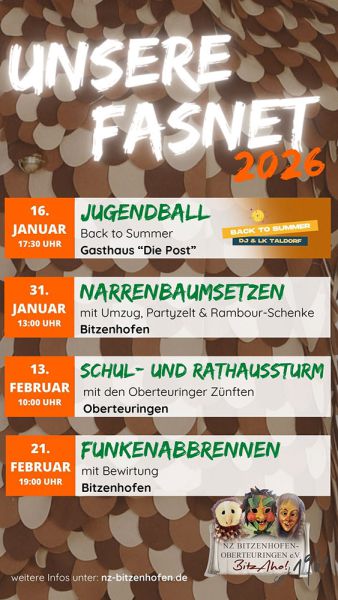 So sind in der fünften Jahreszeit unsere Gruppen wie die Gehrenbergeule, der Teuringer Rambour und die Bitzenhofer Epfelbroggere in der schwäbisch-alemannischen Fasnet besonders aktiv.