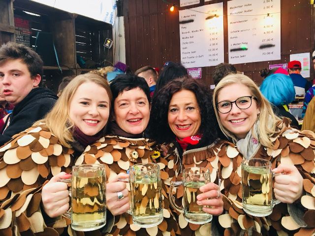 Ann-Kathrin, Katrin, Jeanette und Sabrina beim Narrenbaumsetzen in Taldorf am 13.01.2018