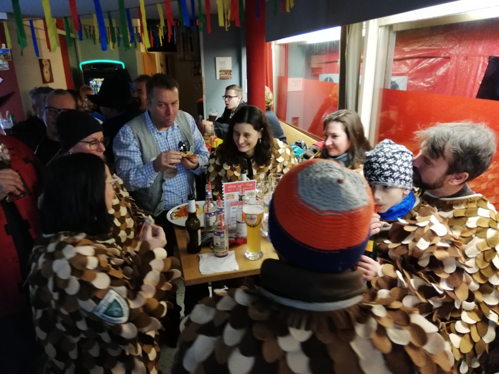 Gesellige Runde mit Bürgermeister Ralf Meßmer nach dem Johleerwecken im “Klein und fein” am 11.01.2019