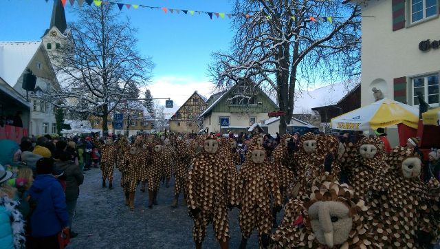 Jungeulen beim Umzug in Weissensberg bei Lindau am 24. Januar 2015