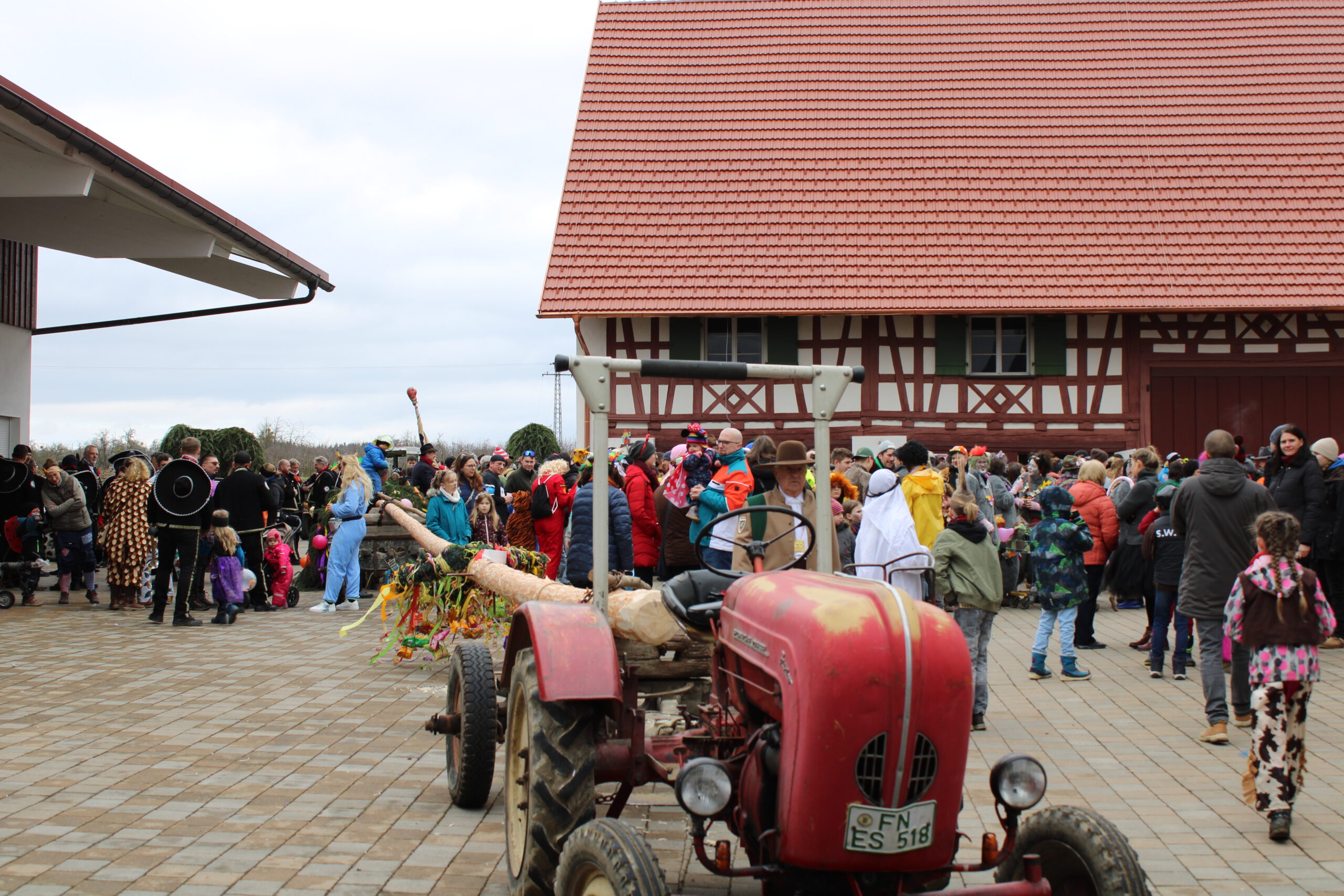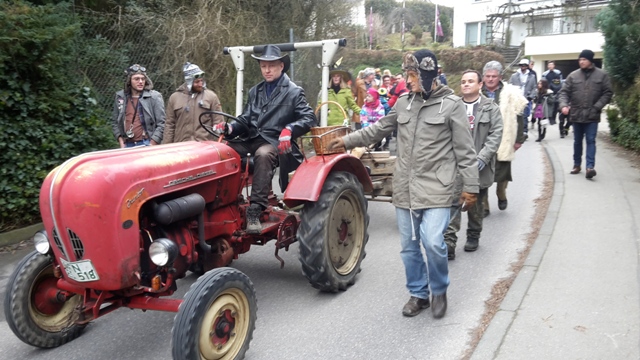 Karl Waggershauser mit seinem Schlepper am 11.02.2017 beim Narrenbaumsetzen