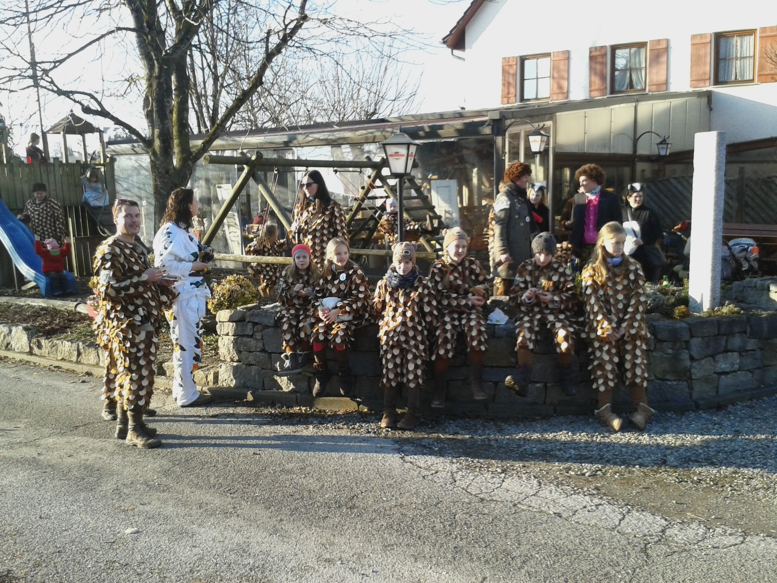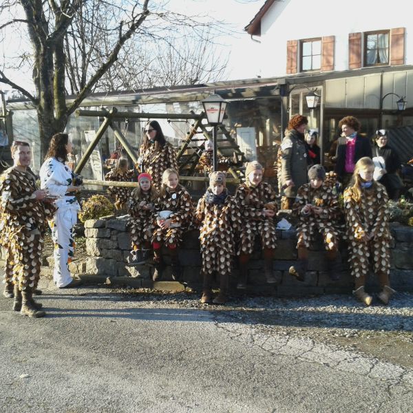 Unsere Zunftkids vor dem Gasthaus Adler beim Narrenbaumsetzen in Hefigkofen am 18.02.2017