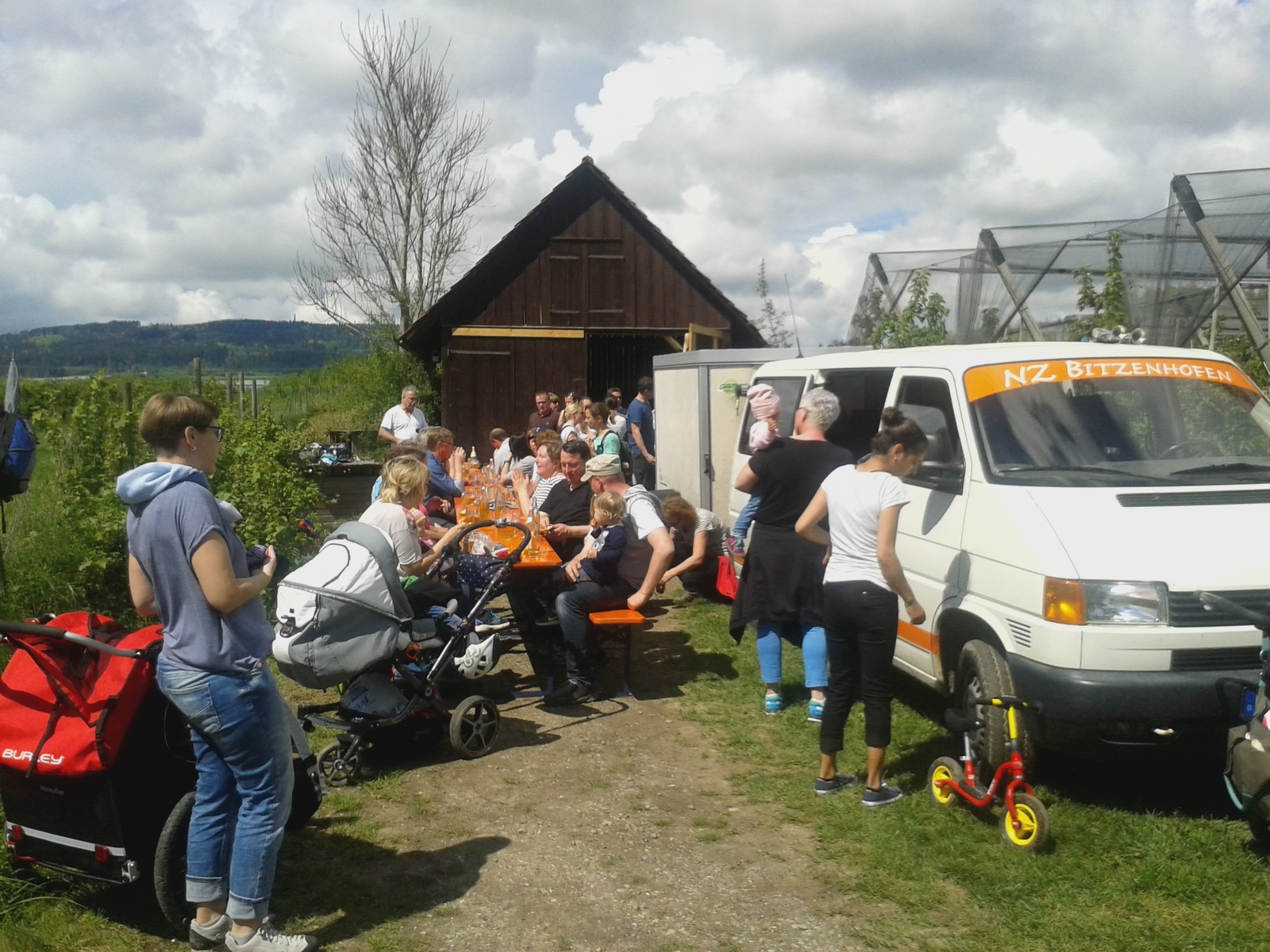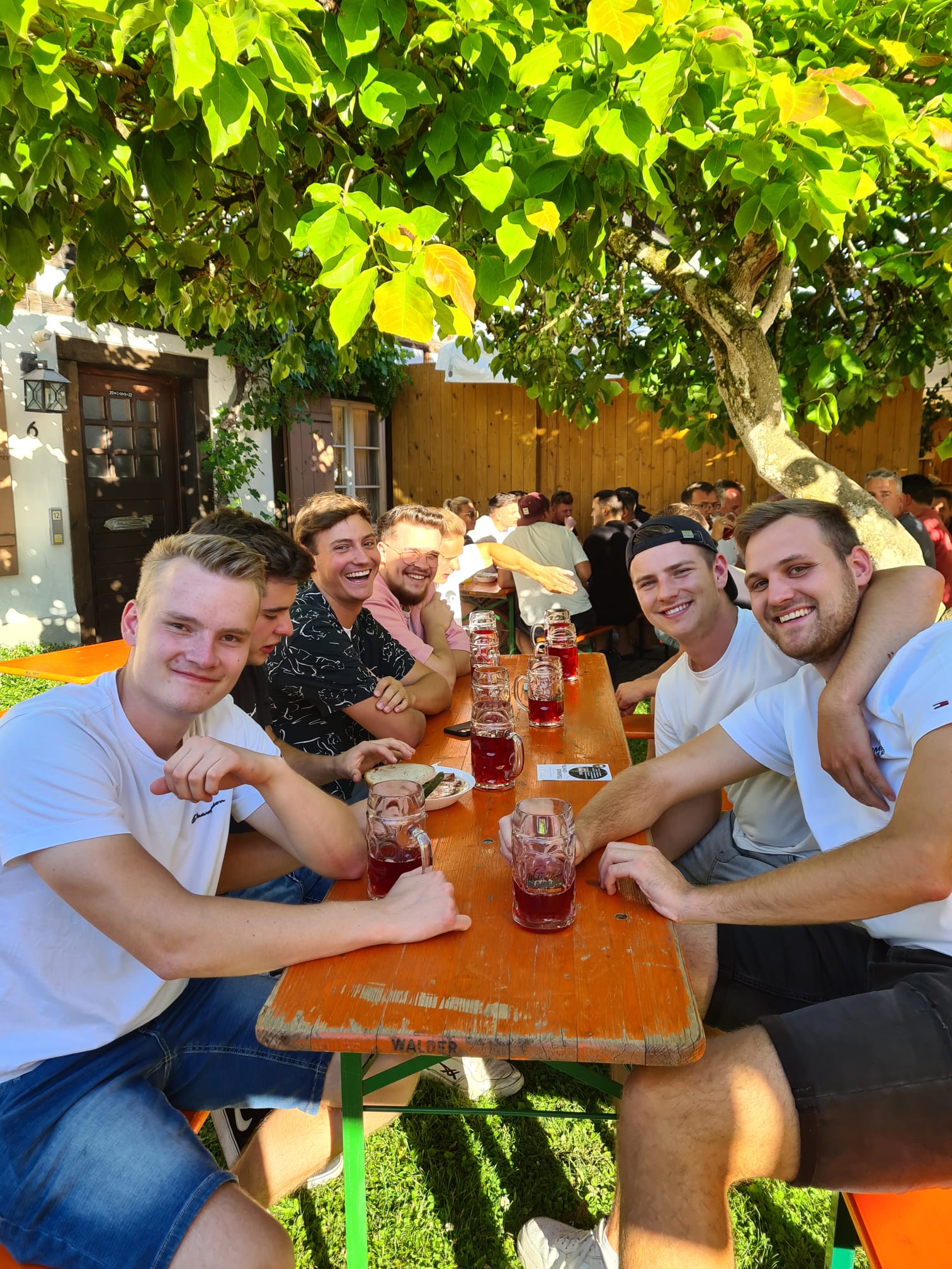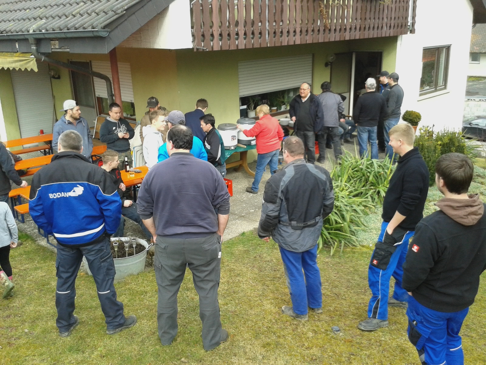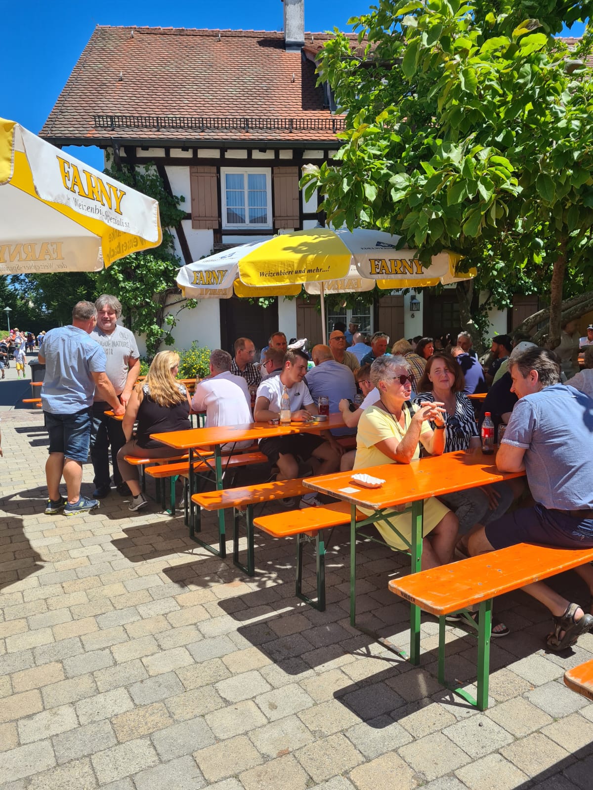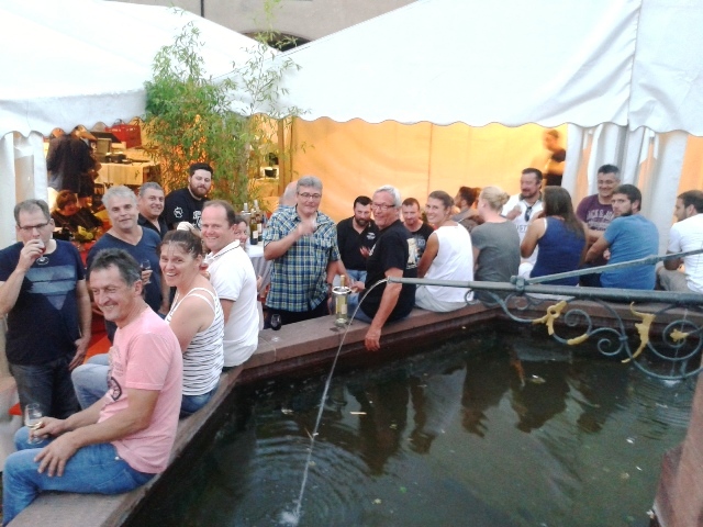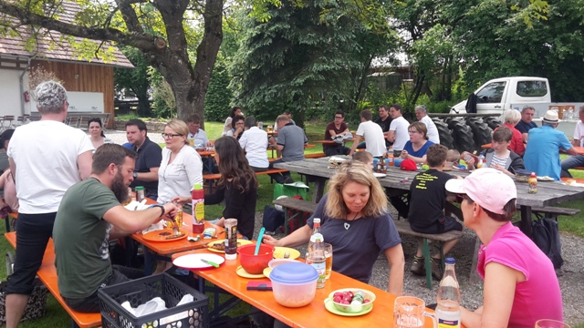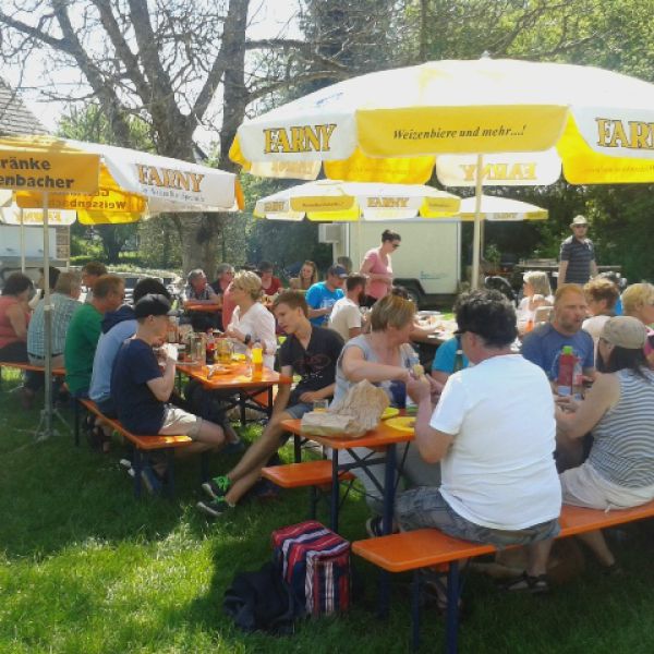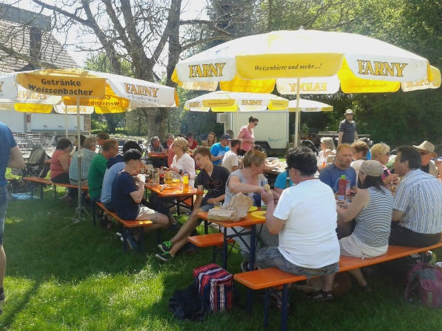 Gesellige Runde im Schatten vom Messnerhaus beim Teuringer Sonntag vom4.-5. Juli 2015