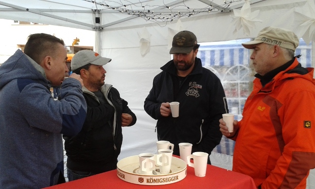 Roi, Alex, Volker und Boohne beim Weihnachtsmarkt am 28. November 2015 auf dem Mühlenplatz
