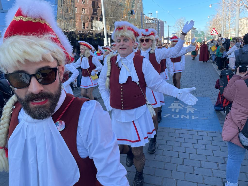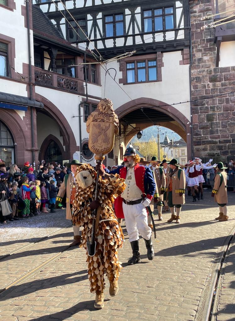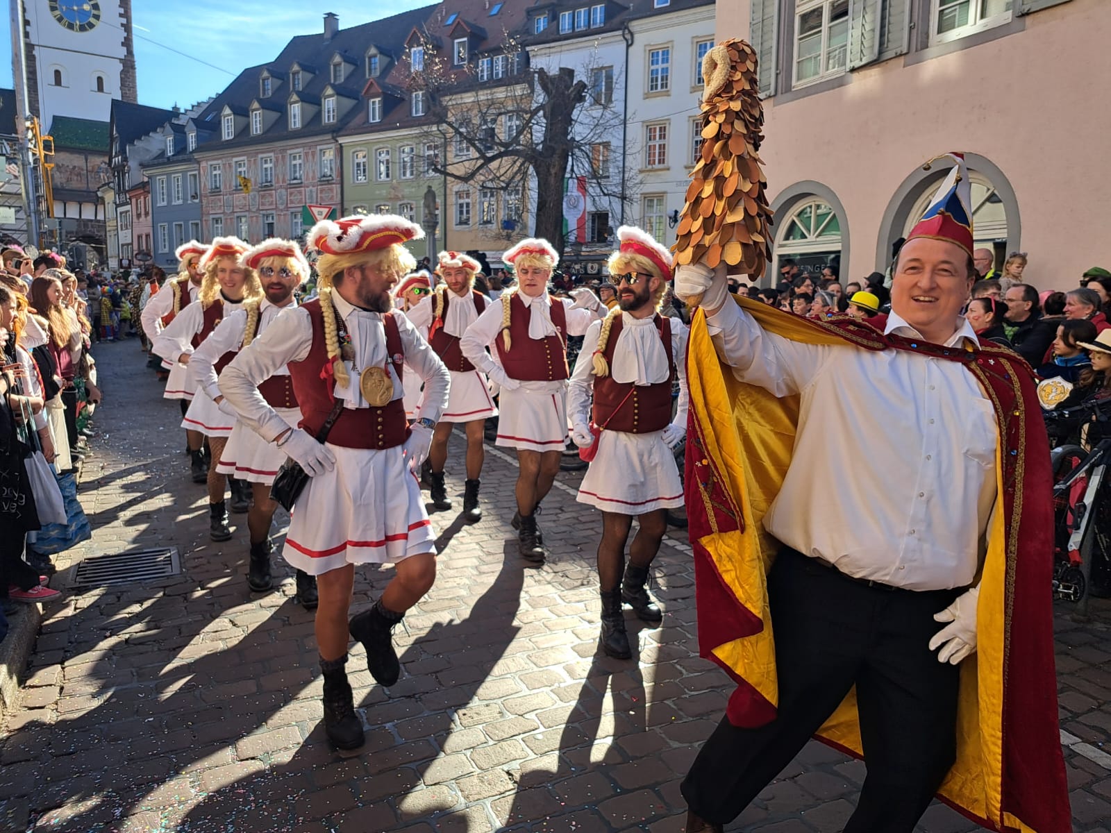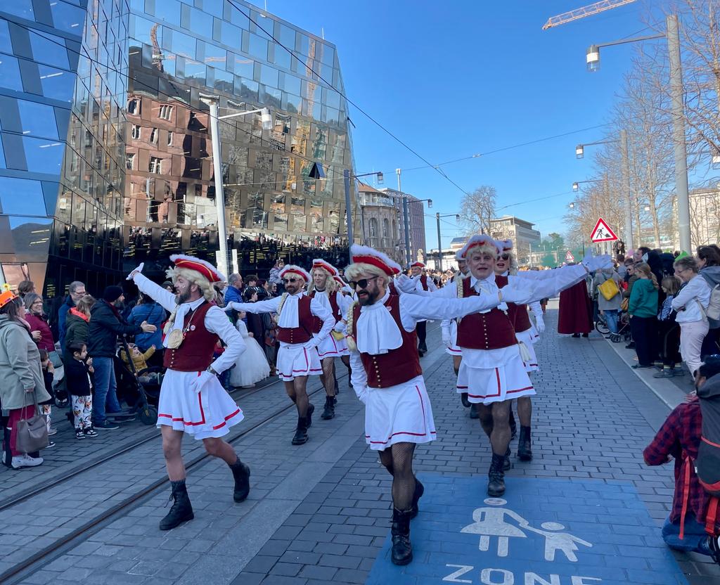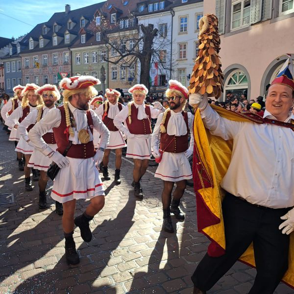 Unsere Männergarde beim Umzug in Freiburg auf dem Münsterplatz am 12.02.2018