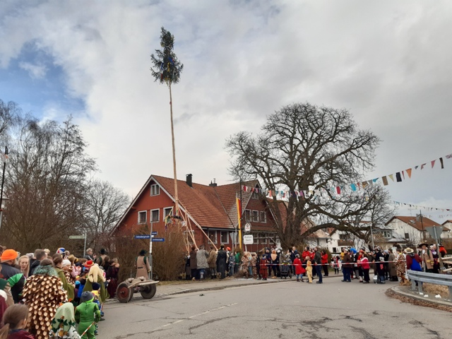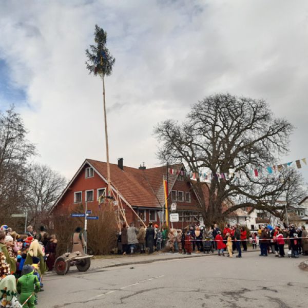 Bitzenhofener Maibaum vor dem Zunftlokal Zweifel