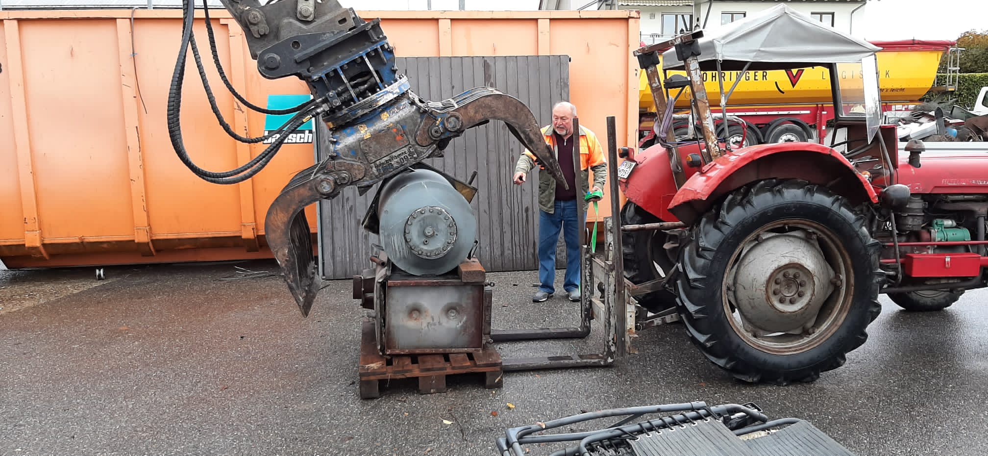 Boohne mit seinem Kipper im Hof von Rehkuglers bei der Alteisensammlung am 10. Oktober 2015