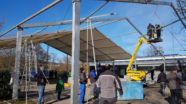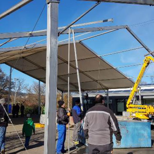 Es geht los! Aufbau unseres Festzeltes auf der Skaterbahn, wo wir die nächsten Tage unser Jubiläum feiern wollen.