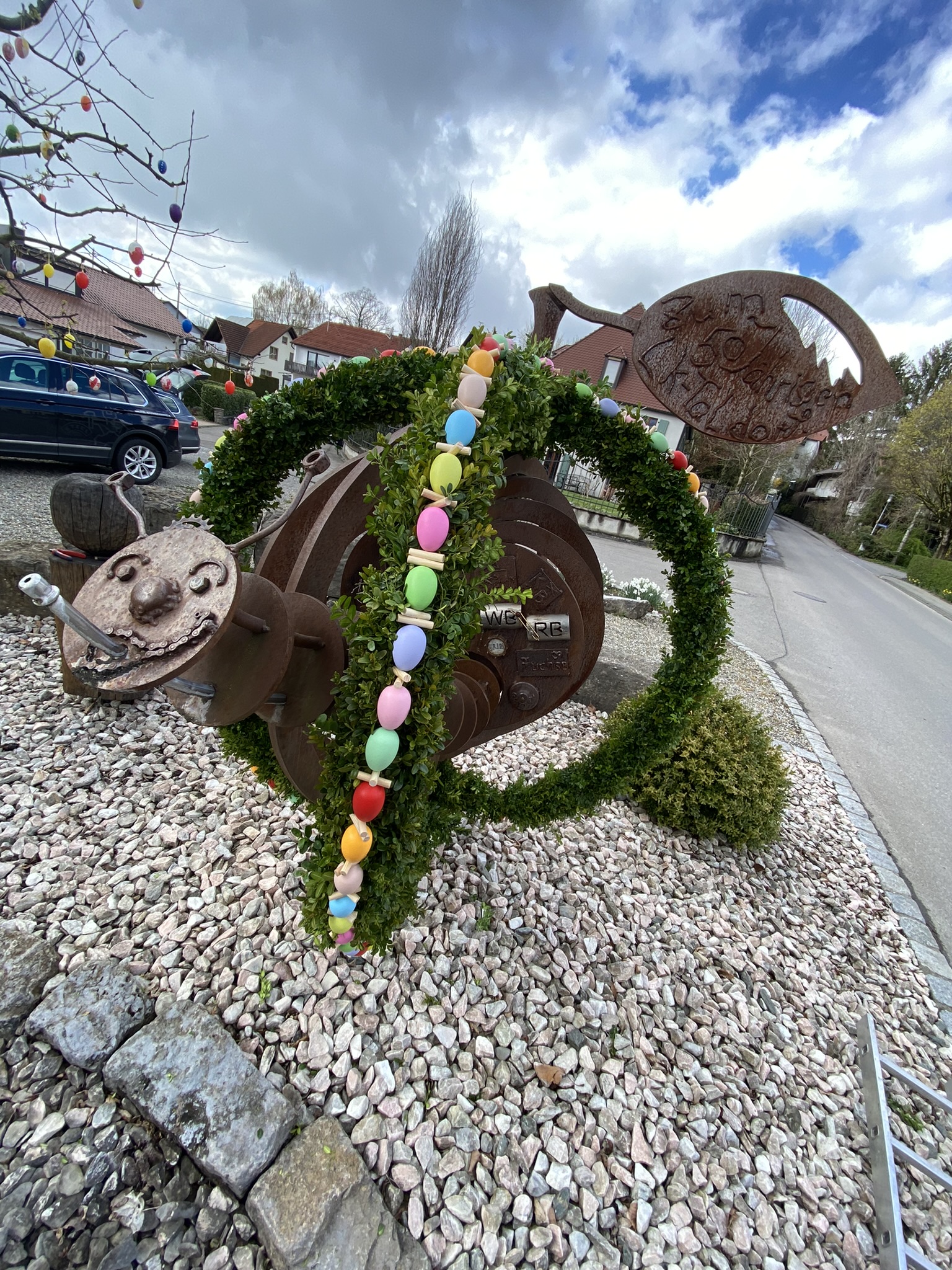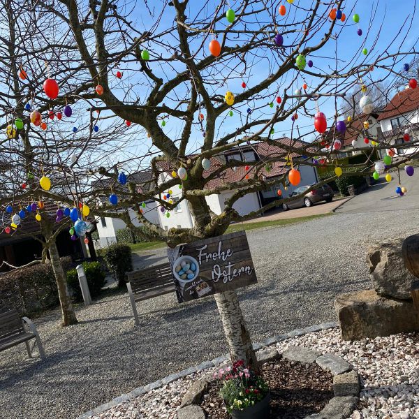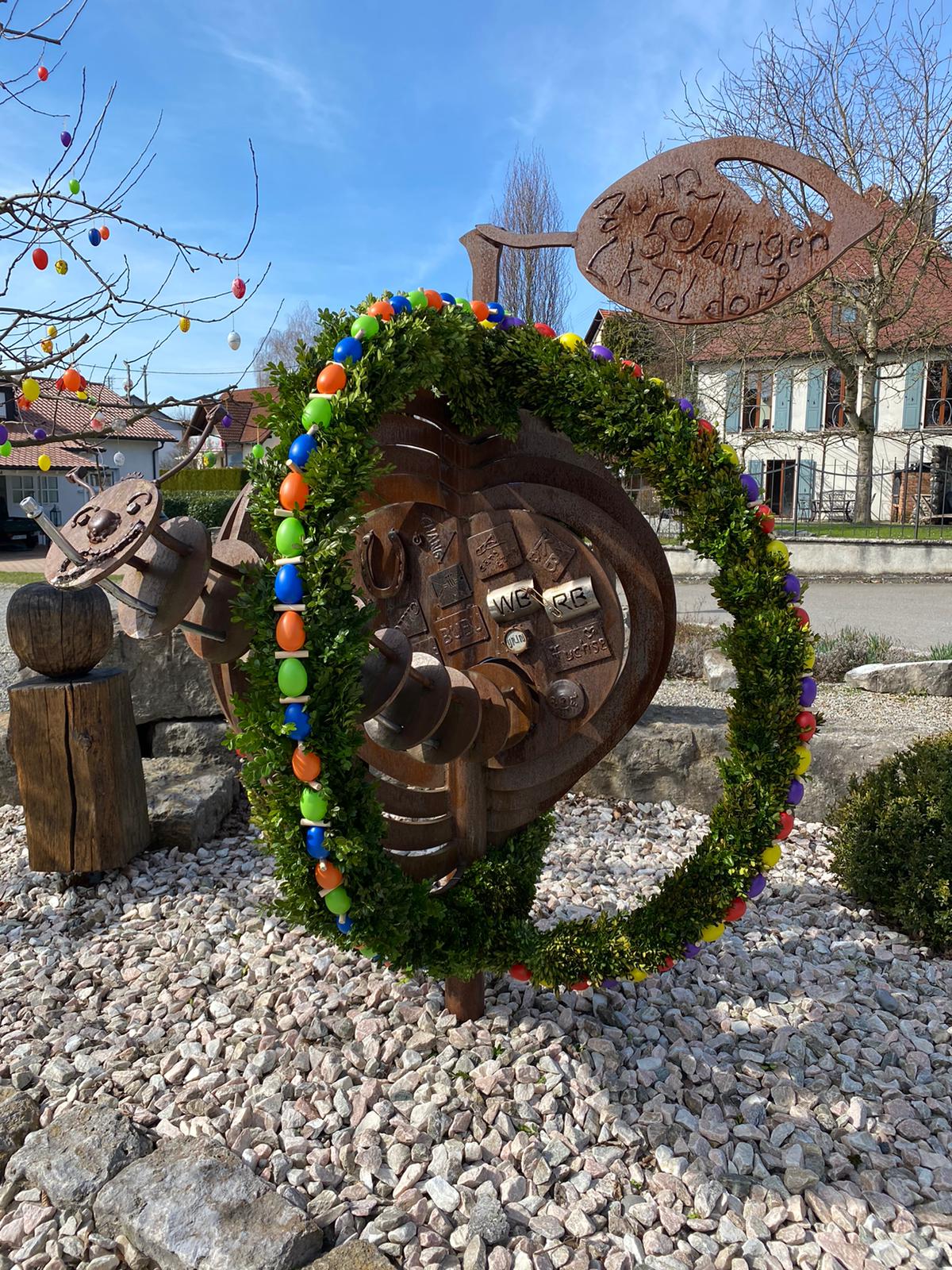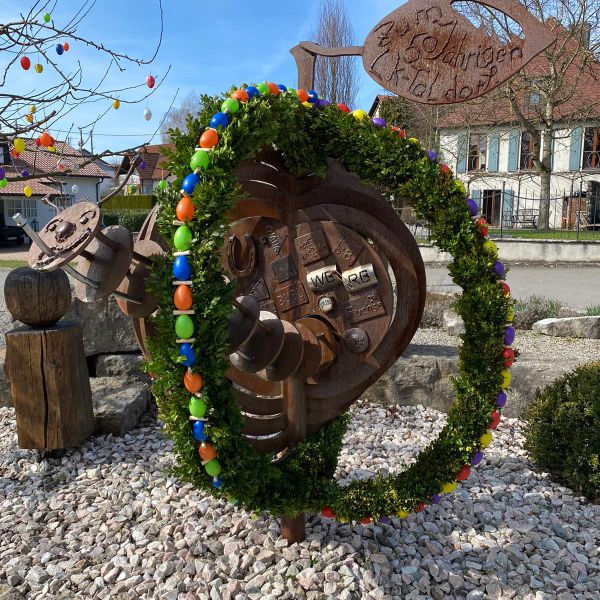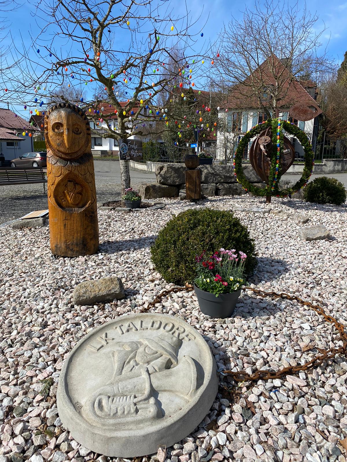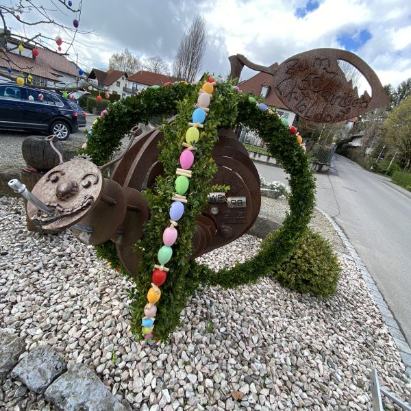 Geschmückter Osterbrunnen am Bitzenhofener Dorfplatz