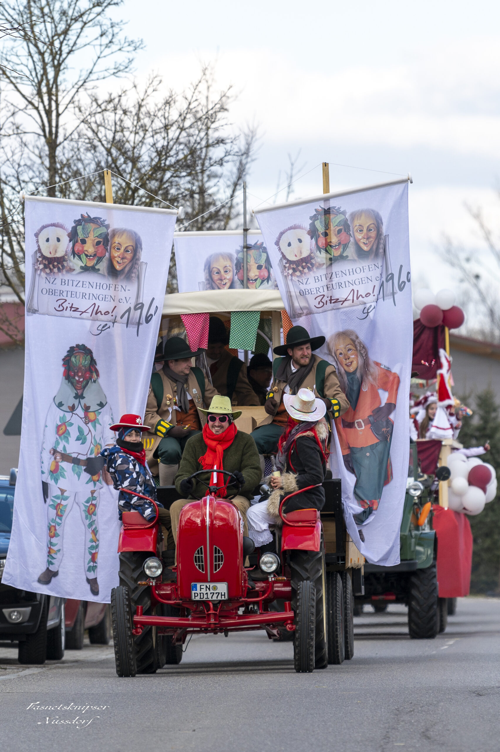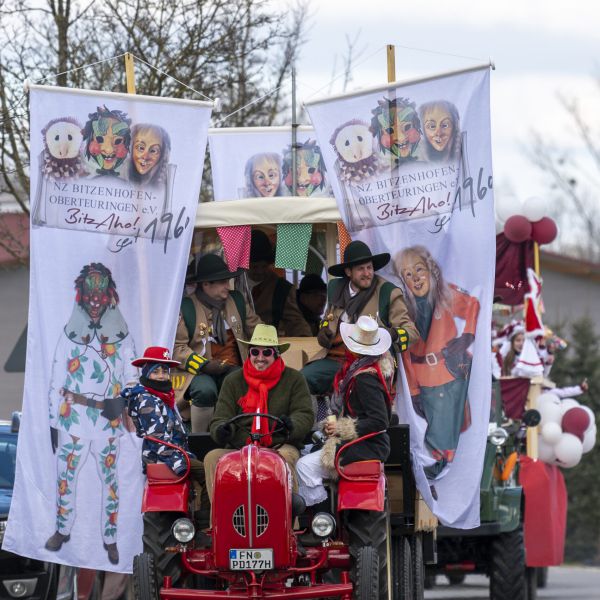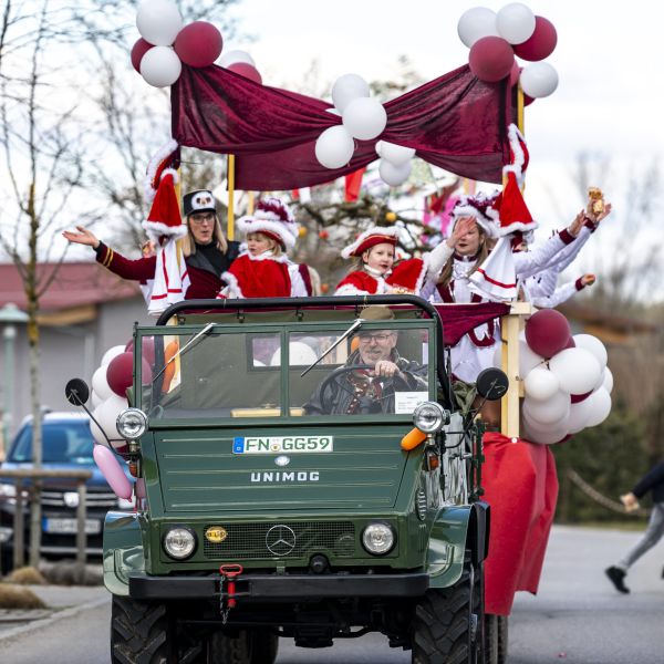 Büttel, Vorstandschaft, Komiteé und Ehrenkomiteé beim Jubiläumsumzug durch die Straßen von Oberteuringen am 08.02.2020