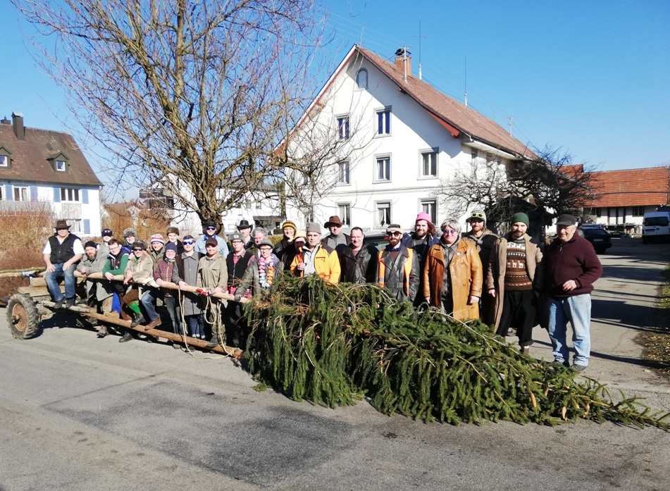 Narrenbaumsetzen Bitzenhofen am 16.02.2019Die Narrenbaumsteller mit den Spendern Sabine und Oskar Müller