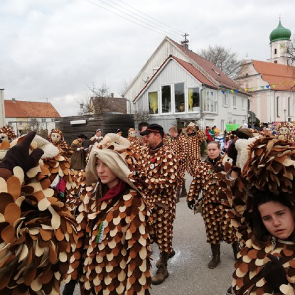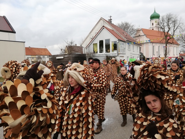 Eulen, Rambouren und Broggere beim Narrenbaumsetzen in Hefigkofen am 15.02.2020