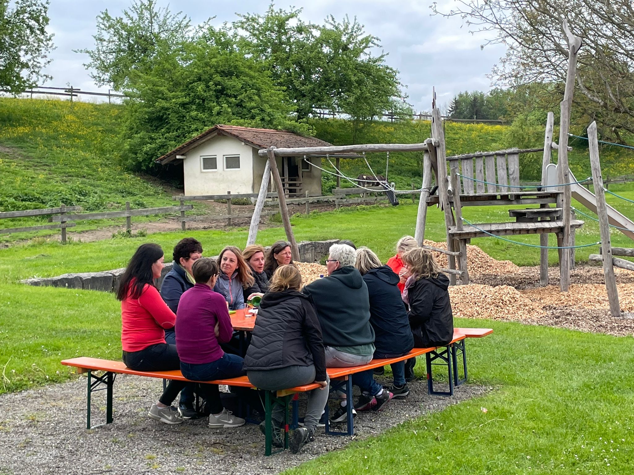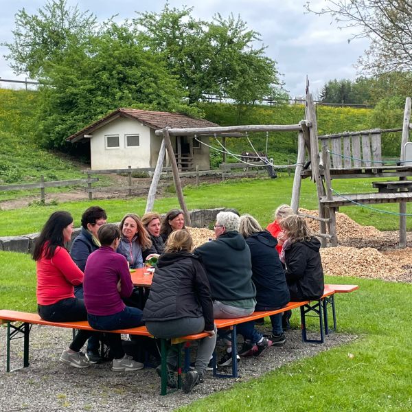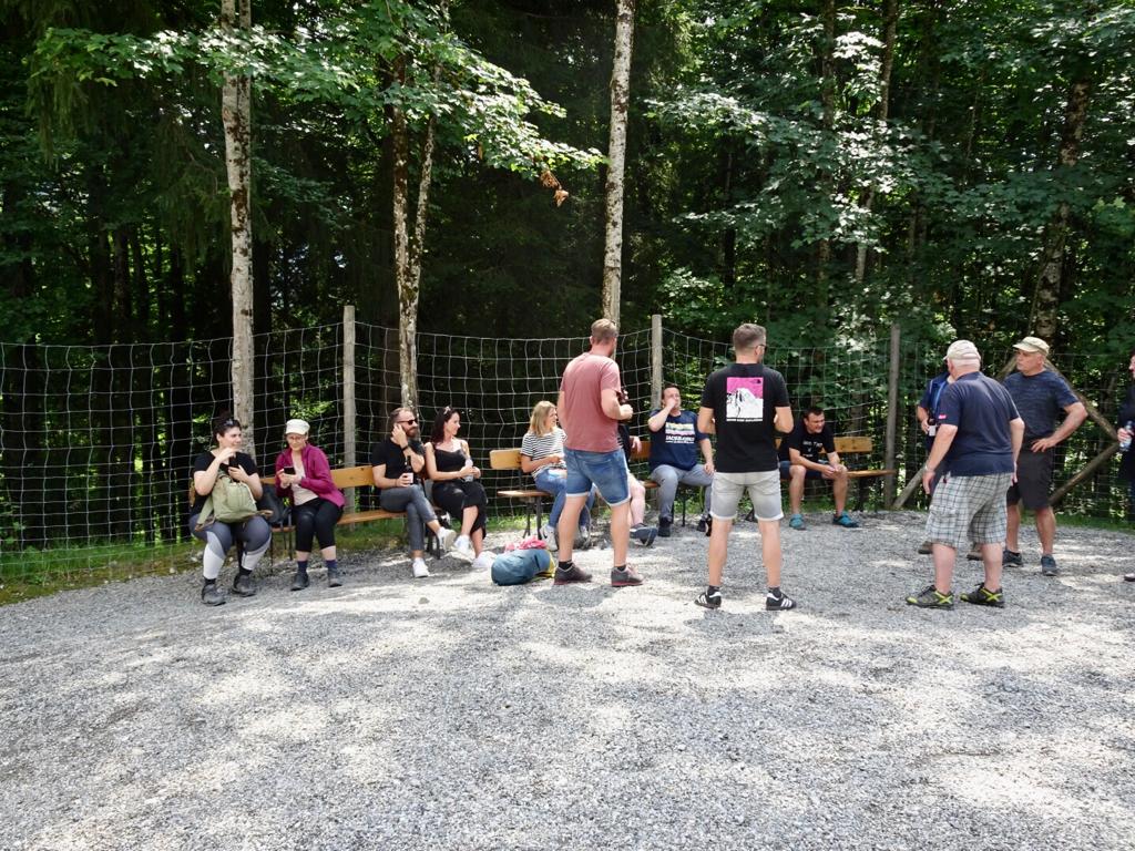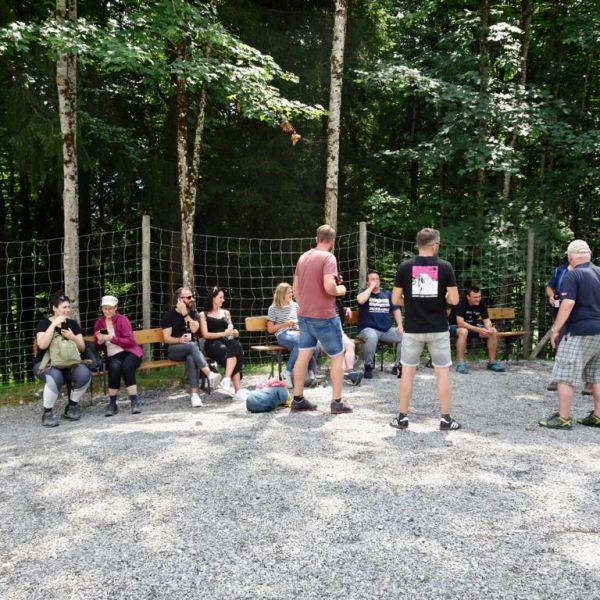 Wanderpause während des Hüttenhaufenthalts des Komieés in Weitnau am 06.05.2017