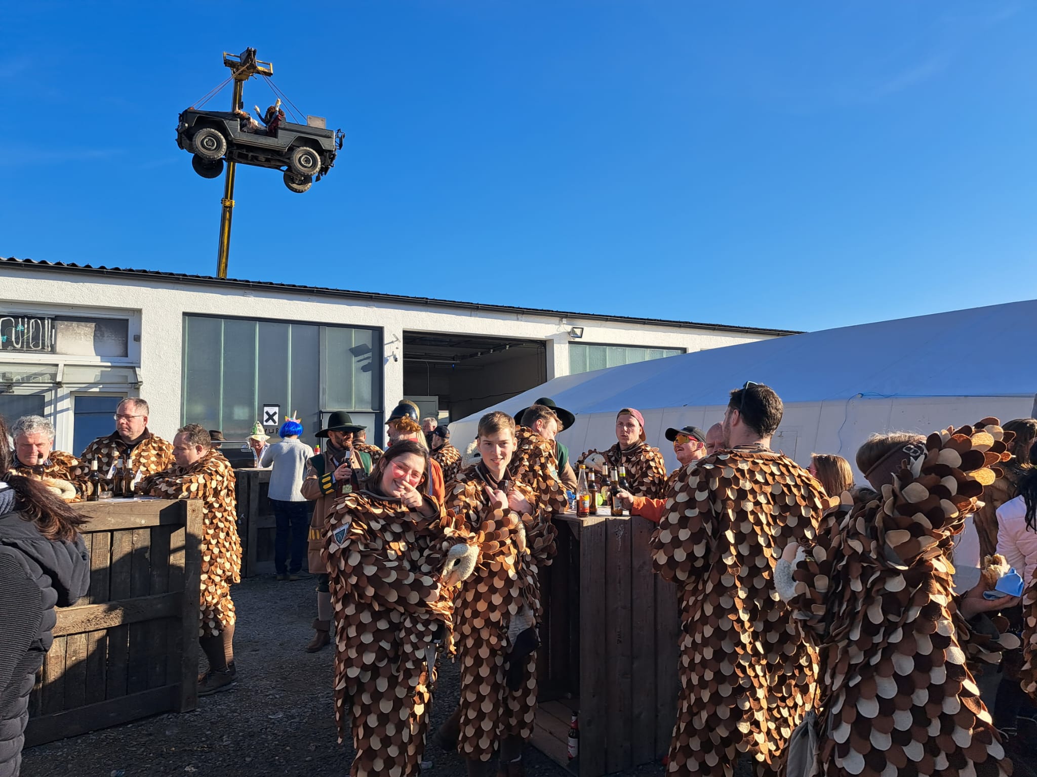 Gesellige Runde beim Narrenbaumsetzen in Lottenweiler