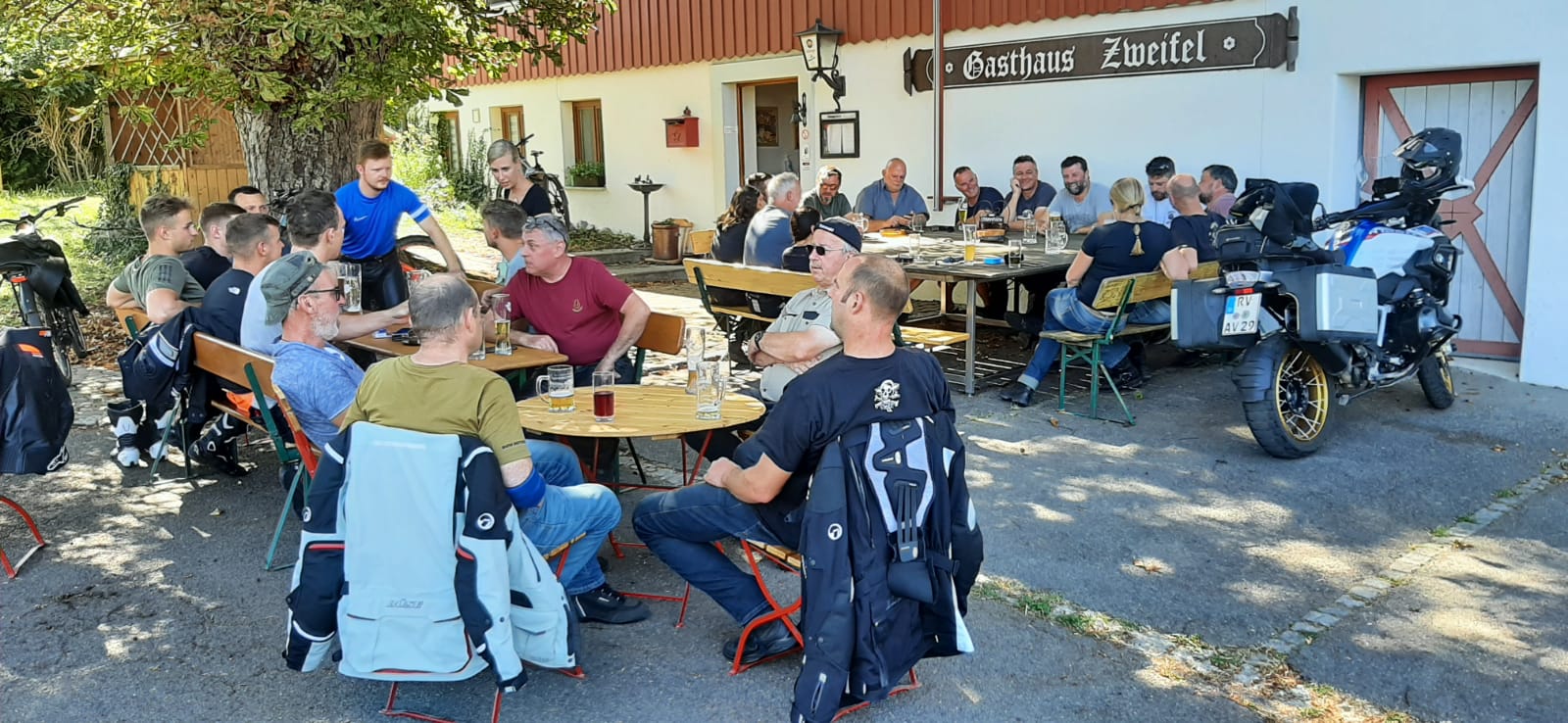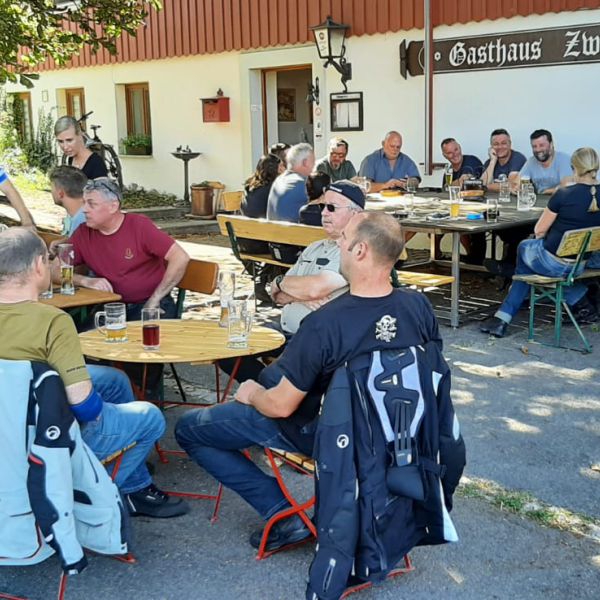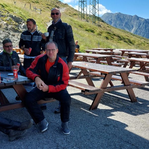 Gemütlicher Hock währen der Motorradausfahrt am 08.07.2018 nach Prestine/Italien