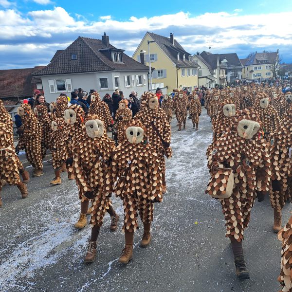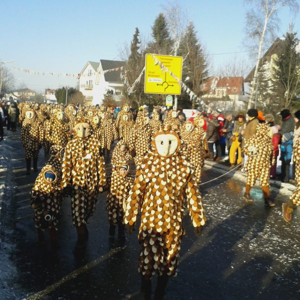 Die Gehrenbergeulen mit ihrem Eulennest beim Umzug in Langenargen am 20.01.2019