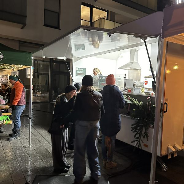 Glühmost und Gulaschsuppe gab es am Stand der NZB beim Weihnachtsmarkt am 29.11.2019 auf dem Mühlenplatz