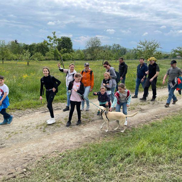 Wandergruppe Fröhlich am Ortsausgang von Rieter bei der Maiwanderung am 10. Mai 2015